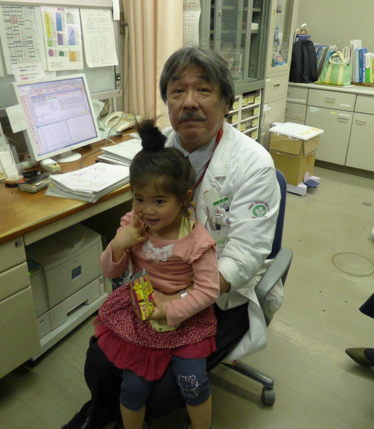 ちなみにこの日、診察室入った娘は、これから何をされるのかと恐怖で大泣きでした。でも和やかな雰囲気で安心したのか、最後は先生に抱っこされてニコニコ笑顔。幼くても楽しそうにしている親の姿でこどもは安心できる場所なのかを察知するものですね。